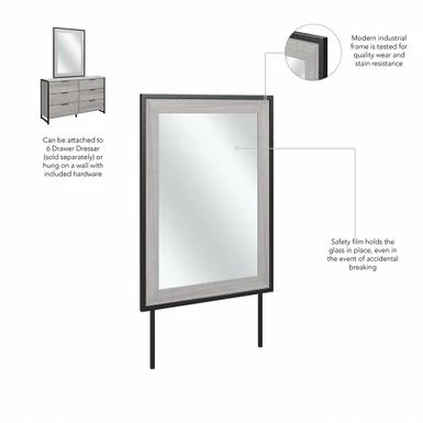 - Can be attached to Atria 6 Drawer Dresser (sold separately) or hung on a wall with included hardware