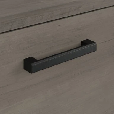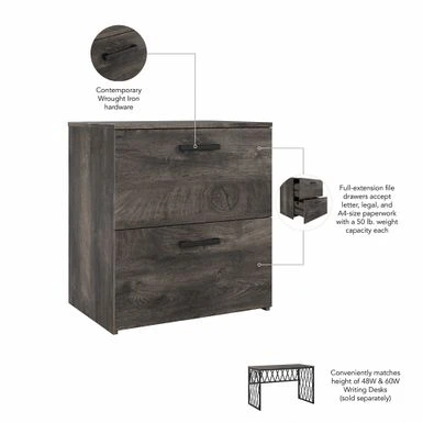 - Rustic finish and contemporary Wrought Iron hardware create an attractive modern industrial appearance