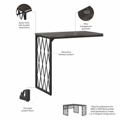 - Must be attached to the City Park 48W or 60W Writing Desk (sold separately) to create L or U Shaped configurations