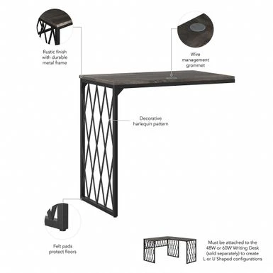 - Must be attached to the City Park 48W or 60W Writing Desk (sold separately) to create L or U Shaped configurations