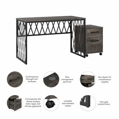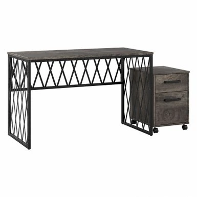 - Bundle includes: 48W Industrial Writing Desk, 2 Drawer Mobile File Cabinet