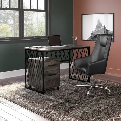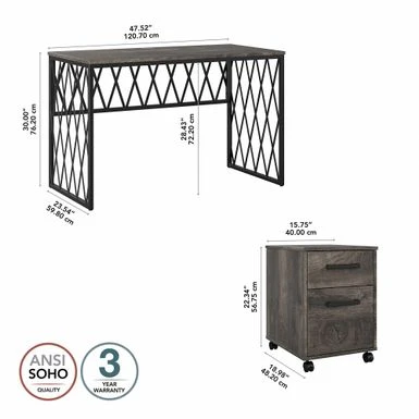 - Bundle includes: 48W Industrial Writing Desk, 2 Drawer Mobile File Cabinet