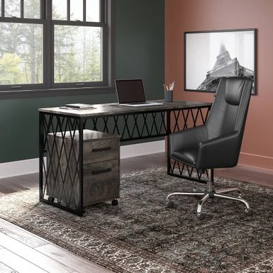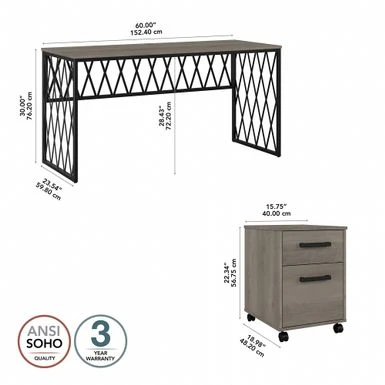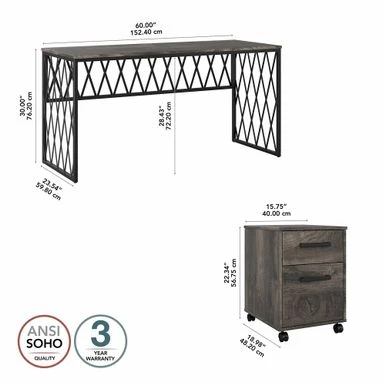 - Bundle includes: 60W Industrial Writing Desk, 2 Drawer Mobile File Cabinet