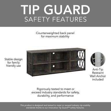 - Tip Guard(TM) safety features include a stable design, a counterweighted back panel, and a wall anchor