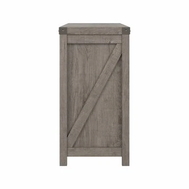 - Diagonal accents, a post leg design and Weathered Nickel hardware present a modern farmhouse style
