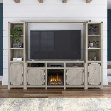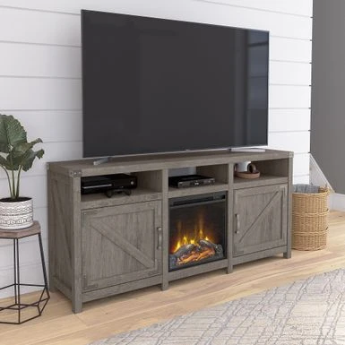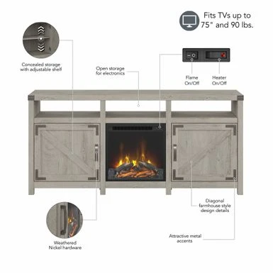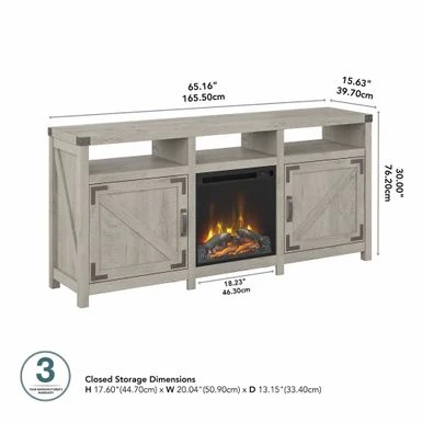 - 65W x 18D x 30H Electric Fireplace TV Stand allows you to organize home media essentials while enjoying a warm and cozy charm; supports up to a 75-inch flat-screen television and/or 90 lbs.