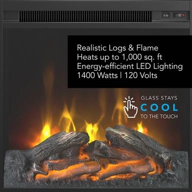 - Energy-efficient LED screen features a realistic log fire; screen stays cool to touch for safety in any residential space