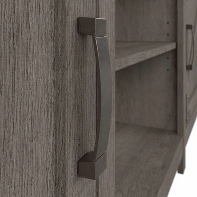 - Right and left storage cabinets each contain one adjustable shelf for flexible storage of movies, games and other home entertainment essentials