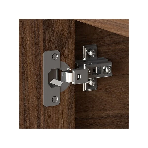 - Cabinet doors feature smooth Euro-style hinges for soft closing