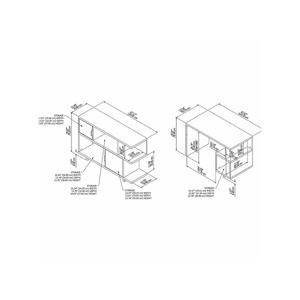 - Computer desk and bookshelf are finished on all sides and have coordinating heights for endless configuration options