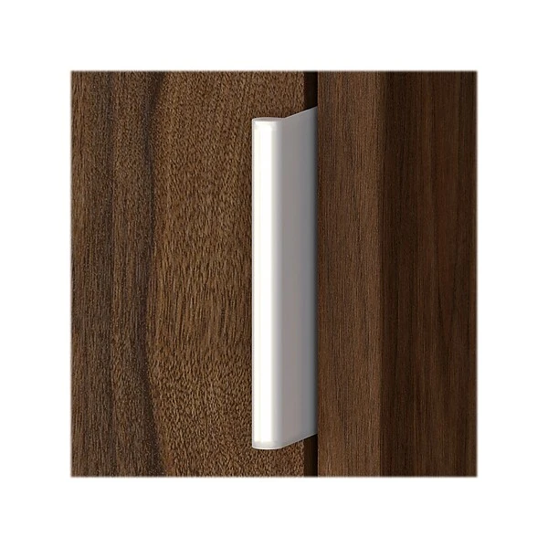 - Cabinet doors feature smooth Euro-style hinges for a soft close