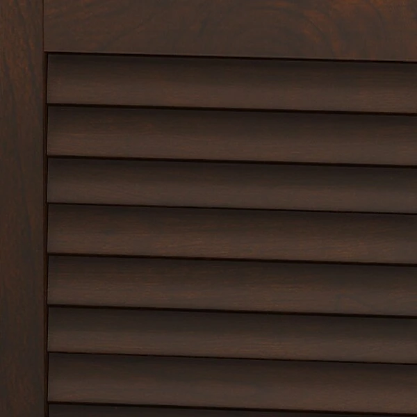 - Attractive Coastal Cherry finish accented by louvered leg side panels and decorative bun feet