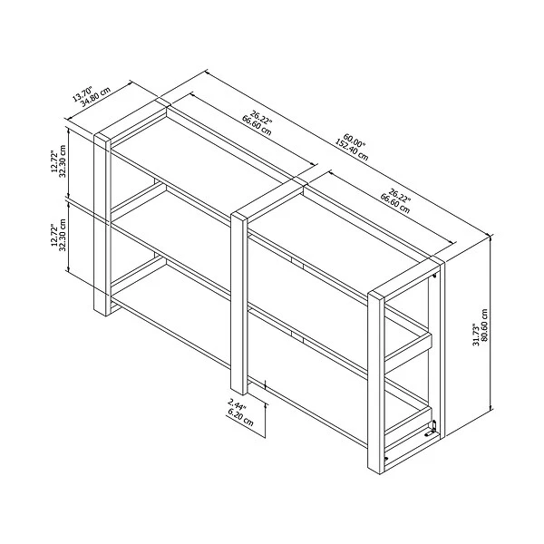 - Assembled dimensions: 31.73″H x 60″W x 13.7″D