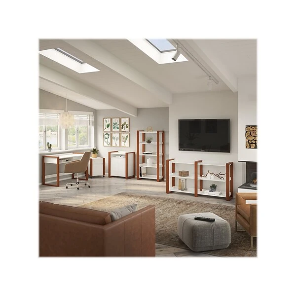 Enjoy a practical storage and display solution that reflects your fashionable tastes with the kathy ireland® Home by Bush Furniture Voss console table. Featuring three fixed shelves capable of supporting up to 25 pounds each, this narrow table has the versatility to thrive in virtually any residential setting. Its 60″W x 13.7″D x 31.73″H design makes it an ideal choice for use as a sofa table or entryway table with more than enough room to store household items and show off your favorite photos or decorations. The three-tier open shelving can also function as a small bookcase to organize your personal library in a living room or home office.