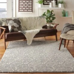 The stunning Sahara rugs by kathy ireland Home bring sophisticated, modern flair to a desert-inspired color palette. Ranging from vintage damask patterns to artistic, contemporary abstract patterns, these rugs are richly textural, adding warmth and excitement to any room. The subtle yet striking palette mixes creamy neutrals in the color families of ivory, platinum, silver, and slate. Power loomed for a lush pile in modern, easy-care fibers.
