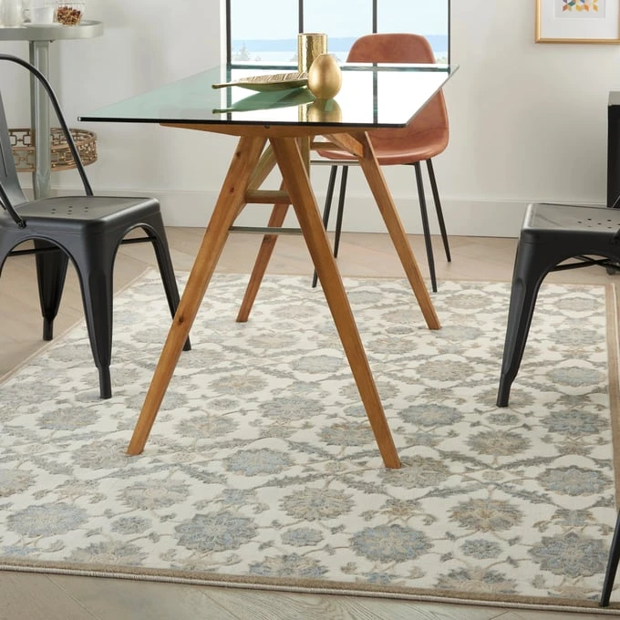 Indulge in elegance with the opulent look of the Grand Villa Collection by kathy ireland® Home. Both sumptuous and practical, Grand Villa presents the patterns of French country and Persian rug traditions in a collection of power-loomed area rugs that are low pile, low-shed, and easy-care. Their style elements include center medallion or all-over designs, with ornamental or narrow borders, all with an intriguing vintage look. The subtle palette of muted neutrals is extremely versatile for contemporary décor, and gives these grand designs a fresh and modern feel. Enjoy a touch of grandeur in your living or dining room, bedroom, family room or home office, with a Grand Villa area rug.