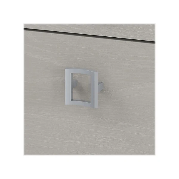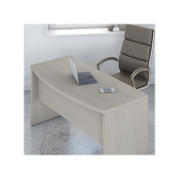 The Office by Kathy IrelandĀ® Echo bow front desk with mobile file cabinet creates a strong presence perfect for those whose passion for business is only matched by their fashionable tastes. An attractive finish and appealing wide lines give a residential feel to the modern workspace. The thick thermally fused laminate surface endures years of use to maintain the office desk’s elegant style. The bow front design encourages placement in the middle of a room and offers an extended surface for guests to pull up a chair and collaborate. Organization is made easy with the mobile file cabinet, which provides two box drawers for supplies and a file drawer that opens on full-extension ball bearing slides for an easy reach to letter-size documents. From Office by Kathy IrelandĀ®, Echo comes with a 3-year warranty and meets ANSI/BIFMA standards for safety and performance.
