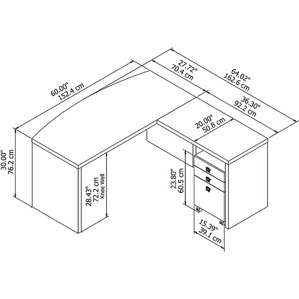 The Office by kathy ireland® Echo L Shaped Bow Front Desk with Mobile File Cabinet creates a strong presence perfect for those whose passion for business is only matched by their fashionable tastes. Blending a Pure White finish with appealing wide lines, the contemporary Desk inspires and gives a residential feel to the modern workspace. A thermally fused laminate finish endures years of use. Spread out on the spacious L Shaped surface with your computer, paperwork or any other tasks of the day. The Bow Front design impresses while encouraging placement in the middle of an office or room. Attach the Return to either side of the Desk to form a left or right-handed layout. The Mobile File Cabinet provides 2 box drawers for supplies and a full-extension file drawer. From Office by kathy ireland® and Bush Business Furniture, Echo comes with a 3 Year Warranty and meets ANSI/BIFMA standards.